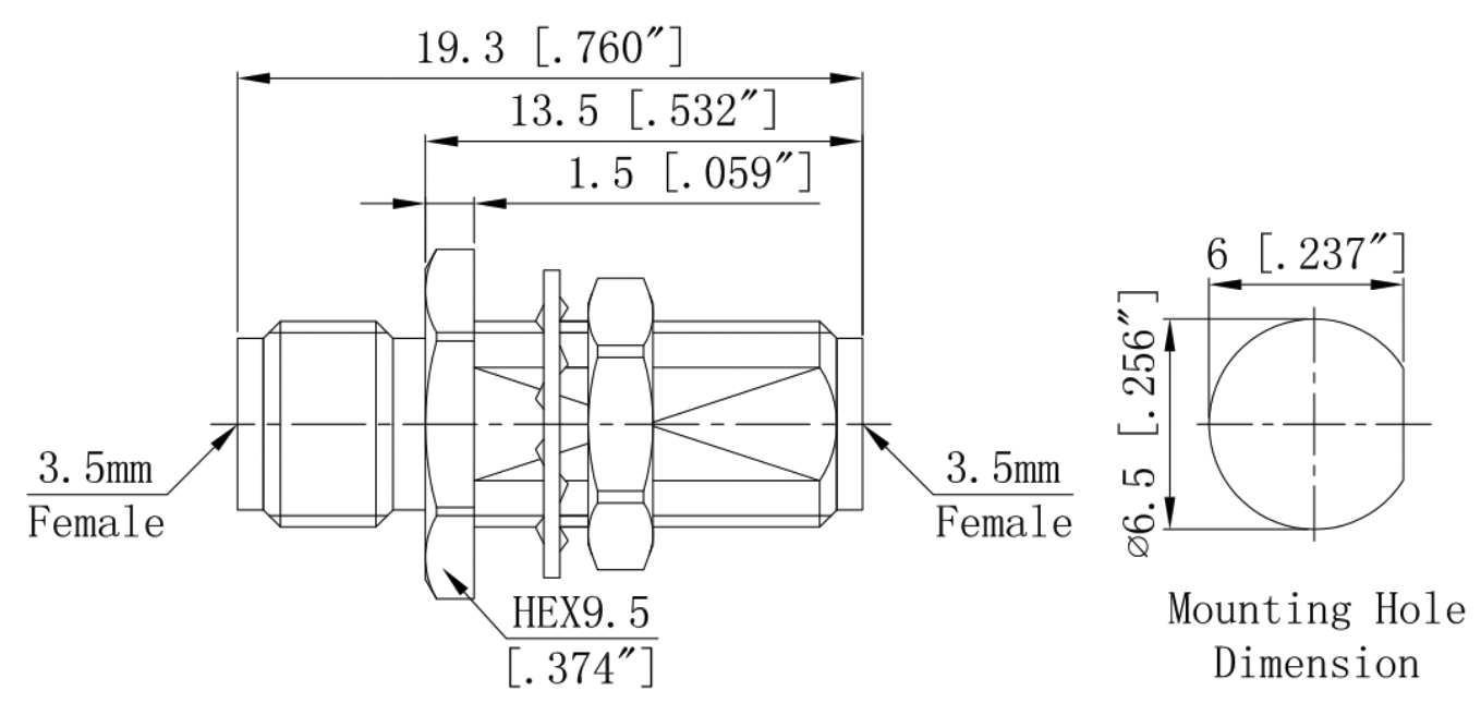 RA3401YS | 3.5mm母 转 3.5mm母 DC-34GHz |