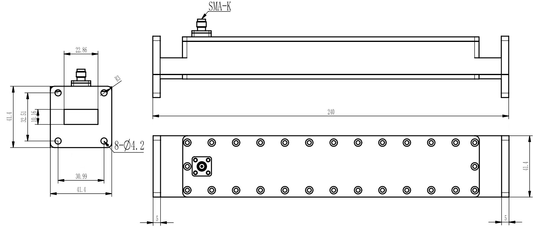 RWDCD90S-40 | 8.2-12.4GHz | SMA母WR90(BJ100) FBP100方形平法兰 |