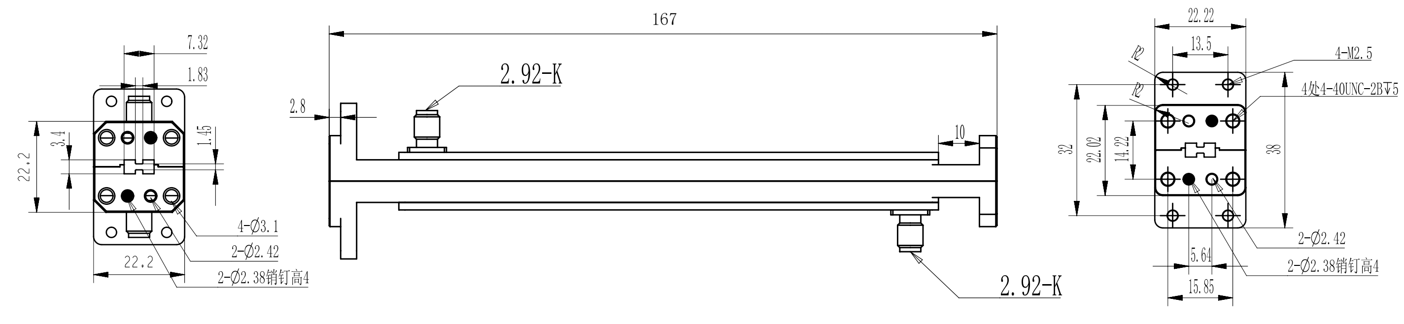 RWDDCD1800K-40 | 18-40GHz | 2.92mm(K,SK)母WRD180 FPWRD180矩形法兰 |