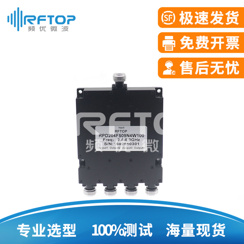 N一分四微带式功分器, 2.4-5.9GHz, 100W, 接头铜镀三元合金
