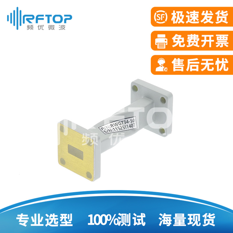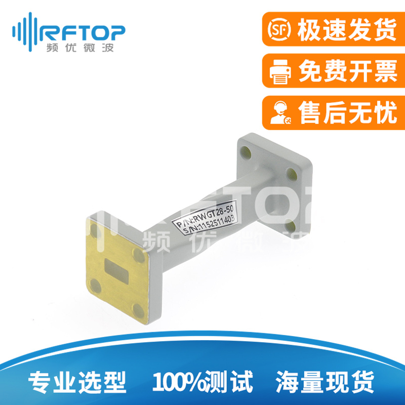 在射频与微波系统中,波导凭借其低传输损耗、高功率容量的特性,成为高效传输射频信号能量的核心互连器件,尤其适用于特定频段(如毫米波至太赫兹频段)的精准能量传输。其金属导电结构(典型材料为铜或铝合金)可稳定承载千瓦级功率电平,满足高功率场景需求。RFTOP®提供全系列波导组件,包括直波导、弯波导(E面/H面)、扭波导(极化调整)、过渡波导(异型接口适配)、柔性波导及定制化法兰片等,覆盖WR3至WR1150及WRD84至WRD1100等数十种标准型号,适配通信、雷达等高精度场景需求,产品支持定制。